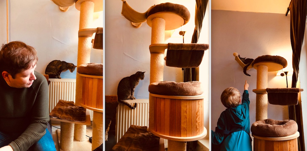Așadar, eram deja în Staré Mesto, orașul vechi al Bratislavei, o rețea captivantă de străzi pietruite și piazzete pitorești cu o istorie bogată ce îți poate oferi o privire asupra trecutului medieval al orașului. Zona este un paradis pentru gurmanzi, cu o gamă diversă de restaurante și cafenele confortabile cu priveliști frumoase. Pasionații de artă vor aprecia numeroasele galerii și muzee, inclusiv Muzeul Orașului Bratislava unde noi n-am fost, pentru că părea închis și până ne-am dezmeticit ne-a luat frigul și am intrat la un ceai la Mačkafé klub, populara cafenea cu pisici, recunoascută în toată lumea. Și vă zic, aici chiar sunt pisici, MULTE pisici, unele mai prietenoase, altele nu, dar toate mari, elegante și îngrijite de nu îți poți lua ochii de la ele. Pe bune că aici te gândești că dacă ai fi pisică, o astfel de viață ți-ar ajunge și n-ai mai avea nevoie de celelalte 8 :)