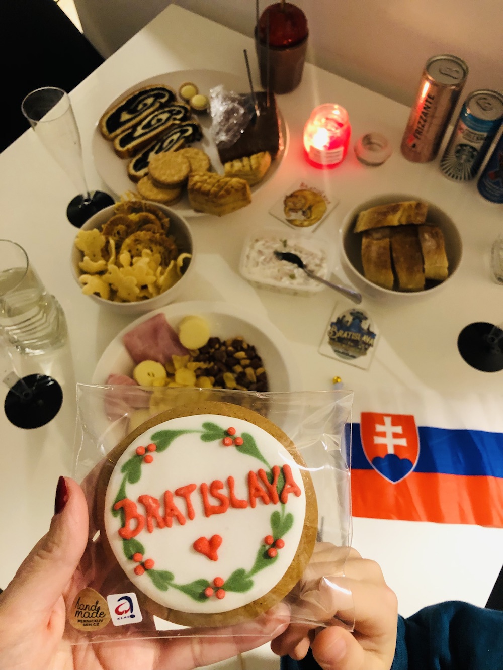 31 decembrie 2024 s-a terminat pentru noi în apartamentul cald și bun, dar nu înainte de a ne umple stomăcelele pentru tot anul la un restaurant tradițional slovac (unde am ajuns fără rezervare, deși cu emoții), pe strada Michalska, aproape de legendara poartă a orașului (Michalska brana). Localul se numește Grand mother’s – Slovak Hause și îl recomandăm cu drag. La fel recomandăm și vinul de mere din Târgul de Crăciun, de unde ne-am luat și-o turtă dulce (foto sus) și cumva la revedere de la atmosfera festivă a Sărbătorilor de iarnă 2024, înainte de a ne întoarce pe jos la cazare, prin în aerul rece și cețos…