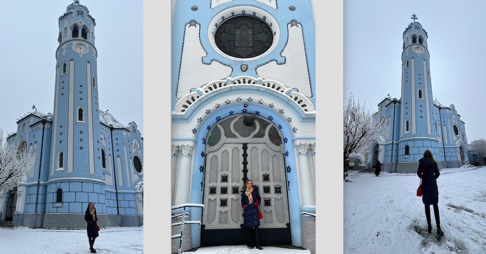 1 Ianuarie 2025 a venit foarte rapid și cred, CRED că a fost după Revelionul cel mai scurt. Ne-am culcat pe la ora 2, când după artificii și’un copil ce dormea buștean, am umărit în liniște două episoade din mini seria Lidia Poët, cu regretul că mai aveam doar ultimul episod din sezonul 2 si nu știam atunci, cum nu știu nici acum, dacă se mai face alt sezon :( A doua zi urma să plecăm spre Budapesta, cu planuri mari pentru un city break de iarnă, într-un oraș văzut de nenumărate ori (sper să scriu). Dar înainte mai aveam ceva de făcut, restanță de cu 10 ani în urmă… să mergem la Biserica Albastră (Biserica Sf. Elisabeta, cunoscută în mod obișnuit ca Biserica Albastră, este o biserică catolică maghiară, supranumită așa, datorită culorii faţadei sale, mozaicurilor din faianţă italiană şi acoperişului său albastru). Și bine am făcut, pentru că a fost o încheiere absolut minunată a acestei revederi cu Bratislava, ne-a lăsat cu sentimente foarte bune vis a vis de oraș și față de această țară “mică, dar voinică”. Cred că vom reveni cândva, pentru a treia oară… chiar cred…